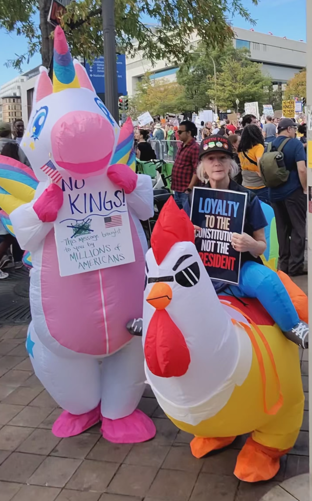 Los eventos organizados en todo Estados Unidos son una protesta contra el presidente Trump, quien según los activistas de izquierda está actuando como un rey. Asistí al evento de Washington, DC y capturé algunas fotos de lo que parece ser una nueva y extraña alianza entre los boomers y los furries: