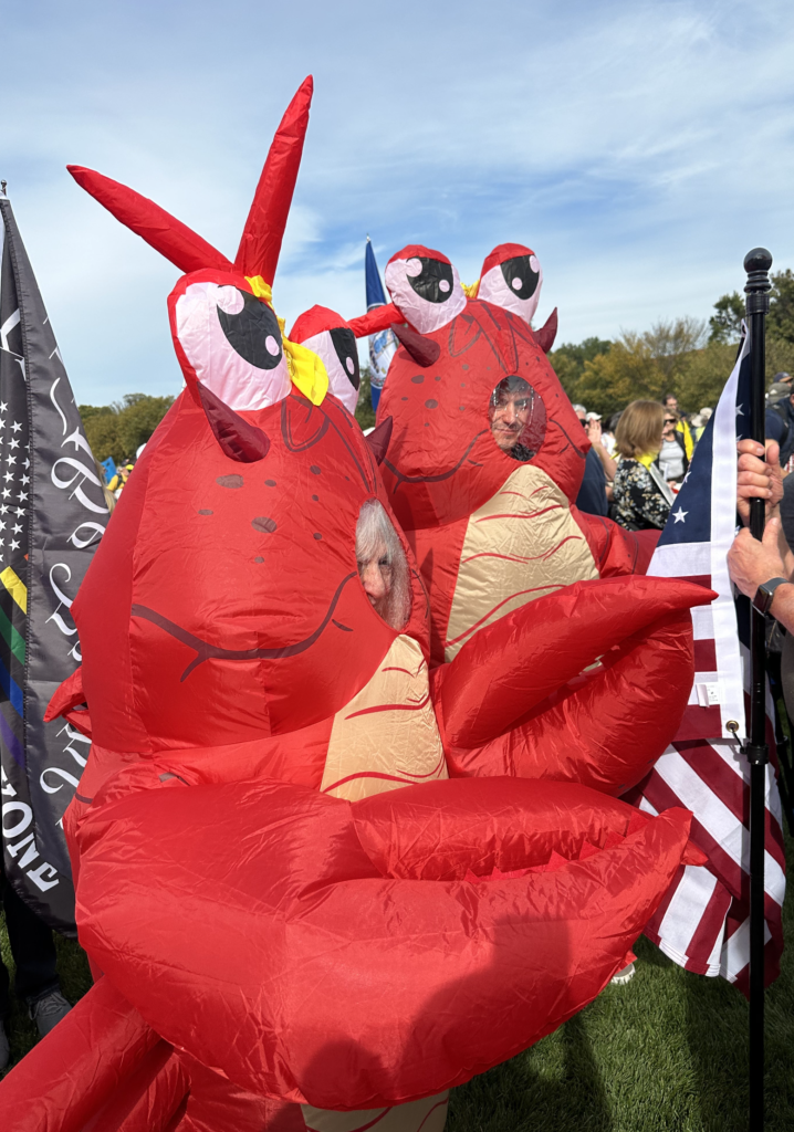 Activistas de izquierda vestidos de langosta asisten a la protesta “No Kings” en Washington, DC, el sábado 18 de octubre de 2025. (Matthew Perdie / Breitbart News)