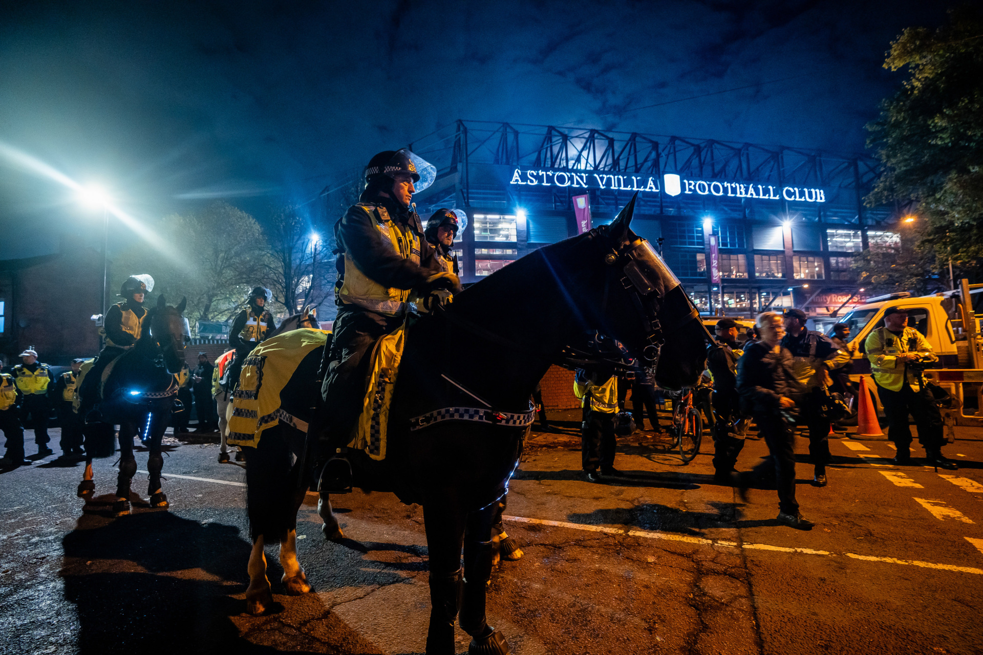 La fuerza policial desplegó más de 700 agentes alrededor del estadio Villa Park por temor a enfrentamientos entre grupos pro palestinos y pro israelíes.