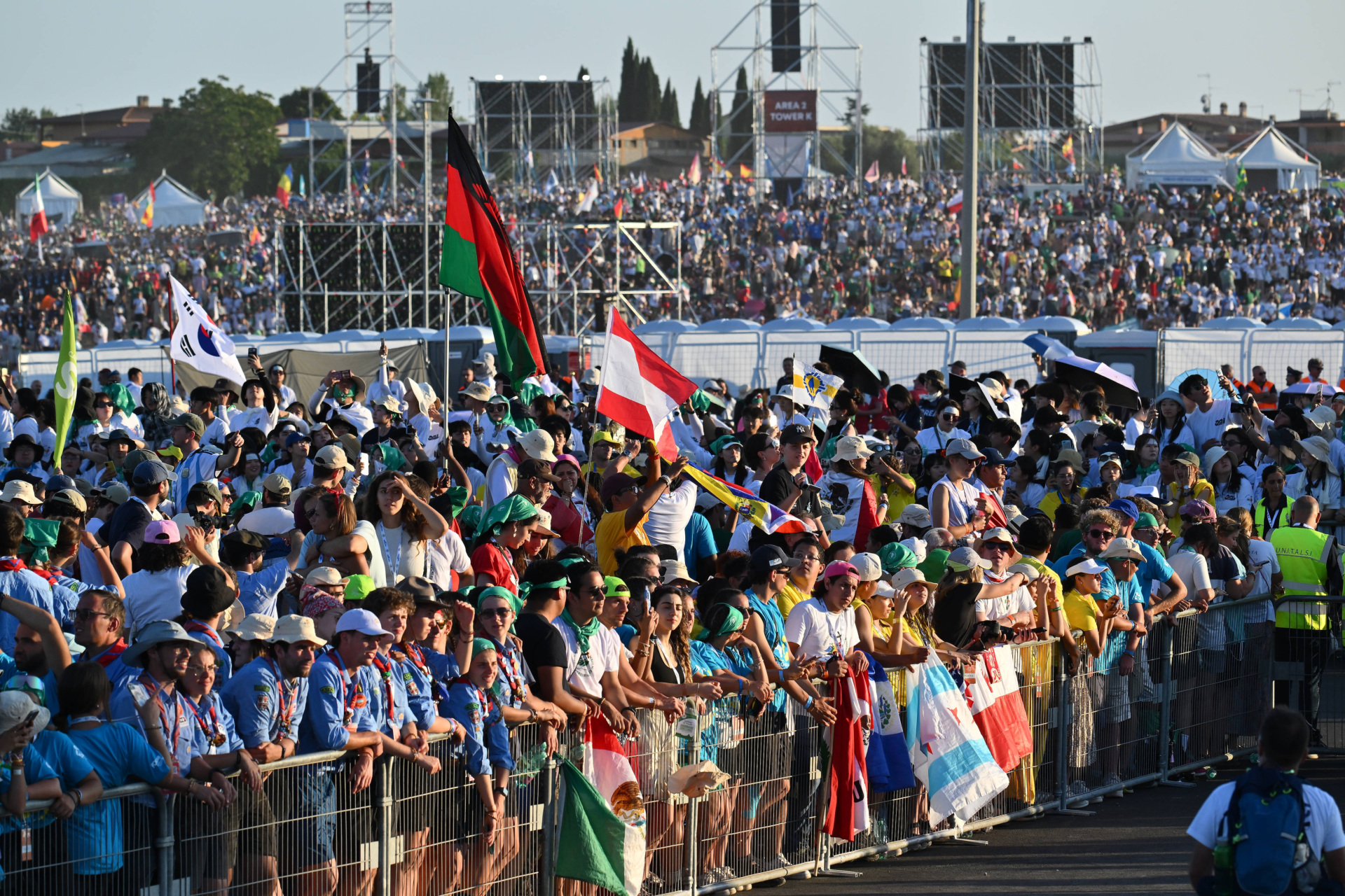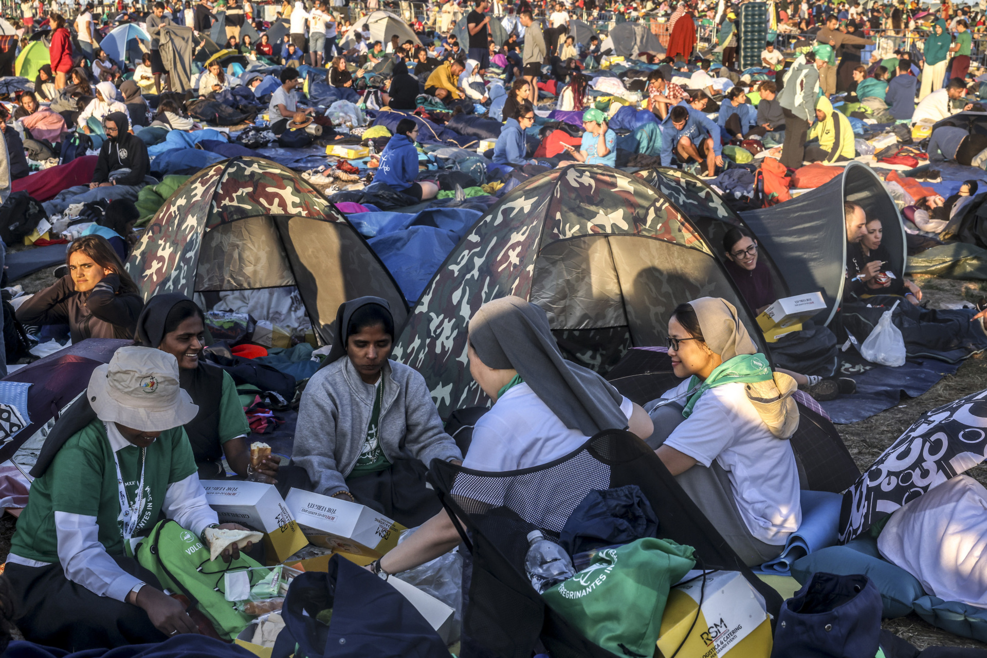 Los jóvenes acamparon en campos extensos al sureste de Roma durante la noche después de asistir a un servicio de vigilia el sábado, también presidido por Leo, que ha sido transportado de la ciudad del Vaticano en helicóptero. La celebración especial del Jubileo es parte del Año Santo que se espera que atraiga a 32 millones de personas al Vaticano para la peregrinación centenaria a la sede del catolicismo.