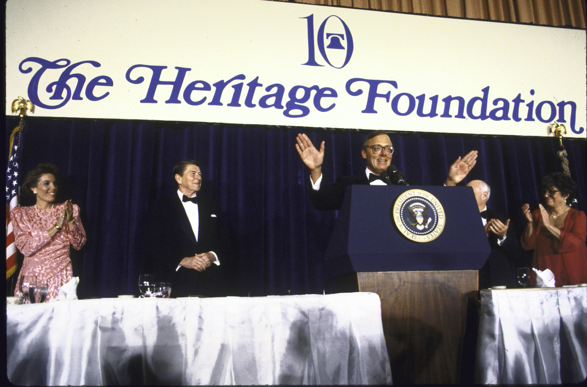 Luego, después de que el buen amigo de Feulner, Ronald Reagan, juró como el 40º presidente en 1981, la cinta transportadora también se extendió a la rama ejecutiva.